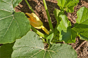 Las calabazas se desarrollan rápidamente. Hay que intentar dirigir sus vástagos para evitar en lo posible que se salgan de su bancal en estos primeros momentos de su desarrollo (foto 7).