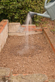 Tras la horca de doble mango, rastrillaremos para eliminar las piedras y otros materiales gruesos (foto 2). El tercer paso es importante que sea el tercero. Vamos a regar generosamente el semillero (foto 3) ANTES de sembrar, ya que si primero se siembra y luego se riega, al tratarse de semillas muy pequeñas, pueden ser arrastradas por el agua a profundidades mayores a las adecuadas para que puedan germinar.