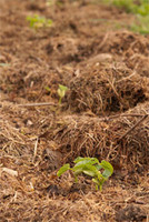 Con la tercera fotografía os queremos mostrar cómo atraviesan la gruesa capa de acolchado las patatas, que por estos días aparecen vigorosas y sin ningún escarabajo. Acordaros de la rotación y la fauna auxiliar!.