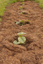 Bigarren argazkian agertzen dira kalabazak. Hurrengo asterako "korrika" hasiko dira. Hemendik aurrera bareekin arazorik ez, hauek jaten duten baino arinago hazten direlako kalabazak. Aste pare baten barru azken estalketa belarrez egiten da urrian hainbeste belar txarrak ez izateko.